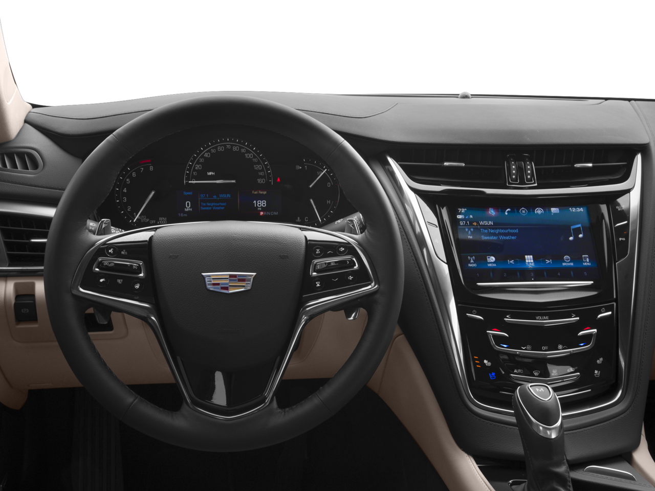 - Cadillac user experience with embedded navigation AM/FM stereo with connected navigation providing real-time traffic, 8" diagonal color information display, two USB ports, personalized profiles for each driver's settings, Natural Voice Recognition, Phone Integration for Apple CarPlay and Android Auto capability for compatible phone, Collection and Teen Driver